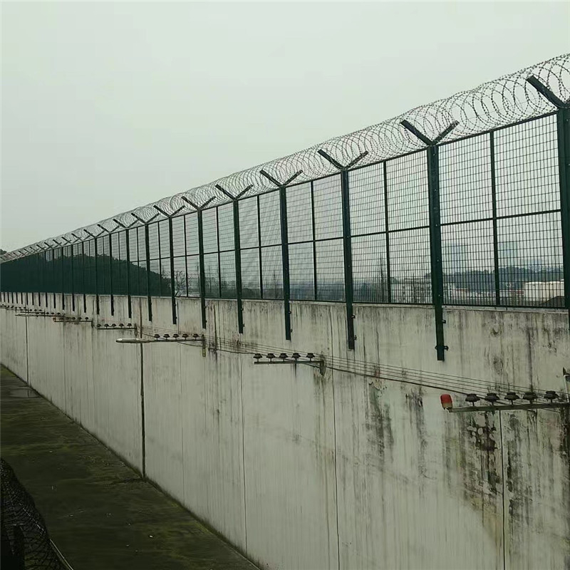 监狱钢网墙是非常重要的监狱安全防护设施,由焊接钢网加蛇腹形刀刺网组合而成。产品具有结构新颖、坚固紧密、网面平整、网孔均匀、刀锋锐利、防攀爬、抗腐蚀性强等特点。建设于监狱的内外墙地面及高墙之上,网墙内侧或顶部加装蛇腹形刀刺网,形成一道高不可攀、难以逾越的隔离障碍。配合高压打击电网、各种监控报警设备确保监狱安全万无一失。