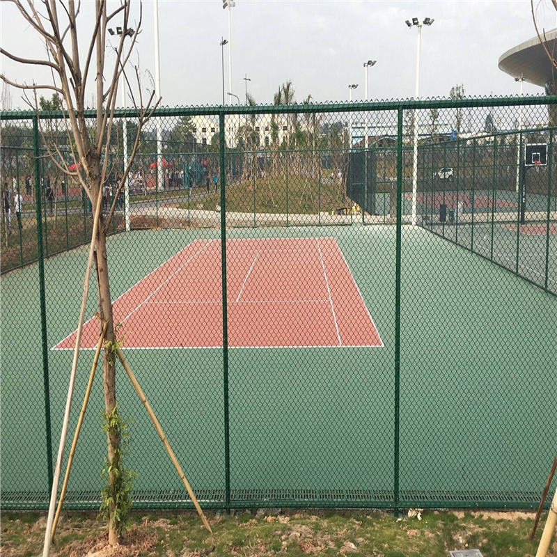篮球场地是一种专业用于篮球运动的场地,常用丙烯酸、硅PU等作为基础面层。 周围必须安装围栏网产品。 篮球场围栏网属于场地围网的一种,它又被称为:"体育围网",为球场围网、篮球场围网、和体育训练场地使用。围网最大特点是灵活性强,可以在现场施工安装围柱,根据要求随时调整网片的结构,造型和尺寸。具有防腐、防老化、抗晒、耐候、色彩鲜亮、网面平整,强力张紧,不易受外力撞击变形、现场施工安装、灵活性强等优点。