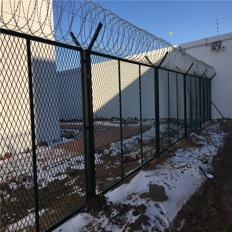 主要用途:监狱、机场封闭 、私人地域、军事重地、 场区围网、 开发区隔离网使用.制作工艺:预直丝、裁剪、预弯、焊接、检验、置框、破坏性实验、美化(PE、PVC、热浸)、包装、入库、出厂。