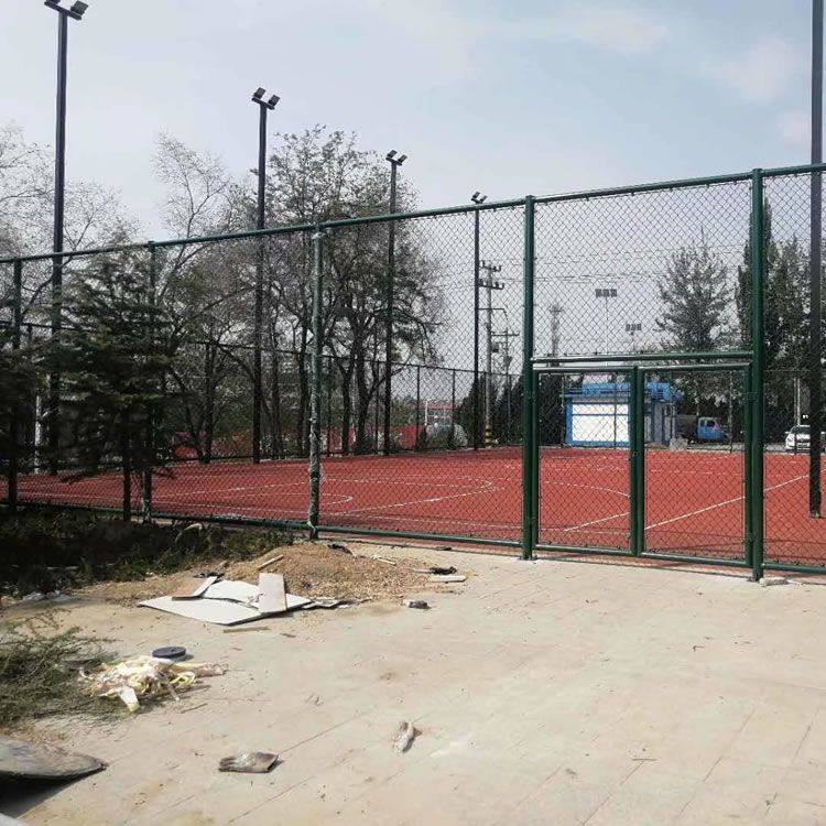 体育场围网特点:色彩鲜亮,抗老化,耐腐蚀,网面平整,强力张紧,不易受外力撞击变形。 围网采用进口PVC材质包塑铁丝网做体育场的围网,既可节省每年为普通铁丝重新油漆的费用,其使用寿命又较普通铁丝网长三~五年,可以保证不会卡住或穿过网球。