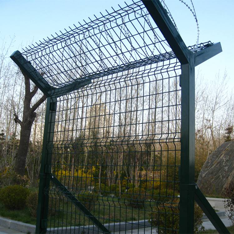 机场防爬围界网 机场围界隔离网 机场围界防护网经过编焊而成;网格结构简练、便于运输、安装不受地形起伏限制,特别是对于山地、坡地、多弯地带适应性极强。机场护栏网的主要特点是网身高大,防攀爬能力强,抗冲击,表面双层优质防腐处理,可达到10年的超长寿命,一经推出,就得到了各大机场的高度认可,机场护栏网是由V型支架立拄,加强型焊接片网,安全防盗连接件和热镀锌刀片刺笼组成是强度和安全防御性级别很高的防护安全。注:如果在机场护栏网顶部加装刀片刺丝、刀片刺绳后又很好的增强了安全防护性能。