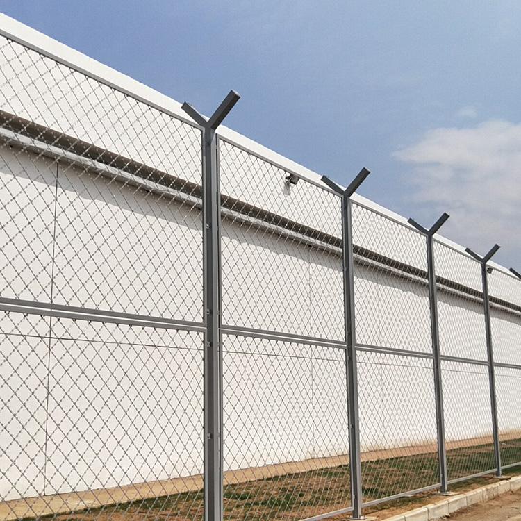监狱钢丝隔离网 监狱隔离网厂家 监狱隔离栅规格,监狱钢网墙、监狱隔离网的网孔不大于50mmX50mm(浸塑后);立柱采用60mmX60mm方管,壁厚不小于3mm。列间距为2.5m,立柱的底部连接到钢筋混凝土底座,钢筋混凝土底座的长度,宽度和高度不小于300mmX450mmX500mm,并且嵌入式钢板构件与柱连接。