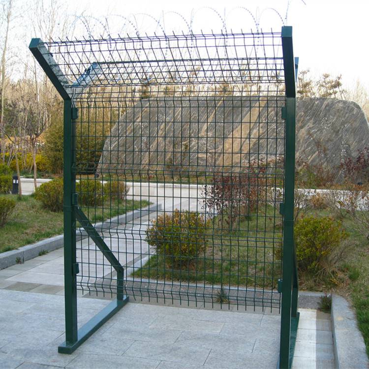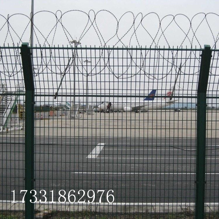 如果在飞机场围界顶部加装刀片刺丝、刀片刺网后又很好的增强了安全防护性能。采用电镀、热镀、喷塑、浸塑等防腐形式,具有很好的抗老化、抗晒、耐腐蚀等特点。其产品造型美观、花色多样,既起到围栏作用,又起到美化作用。由于具有安全性高、防攀爬能力好,网片连接方式采用特制SBS紧扣件,有效防止人为的破坏性拆卸,横向四道折弯加强筋,使网面强度显着增加。