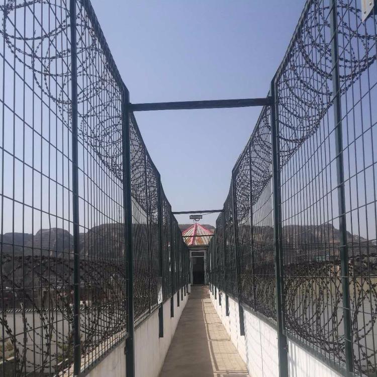 监狱隔离网也称为监狱围栏,监狱隔离网是由V型支架加固的焊接网,由安全防盗连接件和刀片刺网制成,监狱隔离网是一种新型的防护网,它由锋利的镀锌钢板或不锈钢薄板制成叶片,钢丝是芯线的组合,监狱隔离网具有防震,防倾倒的功能,监狱隔离网的材料坚硬,强度高,张力高,设计独特,不易碰触,因此可以达到优良的防护和隔离效果,监狱隔离网还具有结构简单,经济实用的优点。