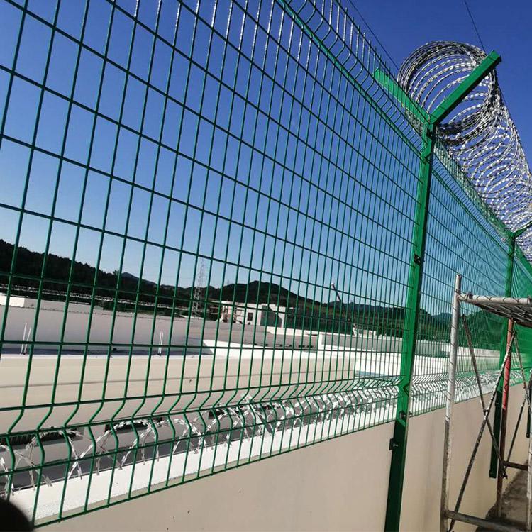监狱隔离网也叫监狱护栏网,监狱钢网墙,是应用于监狱相关单位看守所.戒毒所.拘留所.重要军事基地.机关单位.哨所.边防边境线等的圈禁防护。这些单位统一有一个特点,所需要的物理安防隔离网必须是防攀爬,防破坏,防切割的,也就是我们最高标准的隔离网。以监狱为例,一般常用的隔离网地方可分为:狱墙上隔离网,巡逻道隔离网,外监墙隔离网,内监墙隔离网。根据所需要的场合不同,地方监狱验收标准不同,监狱隔离网的样式及规格常用的有以下几种: