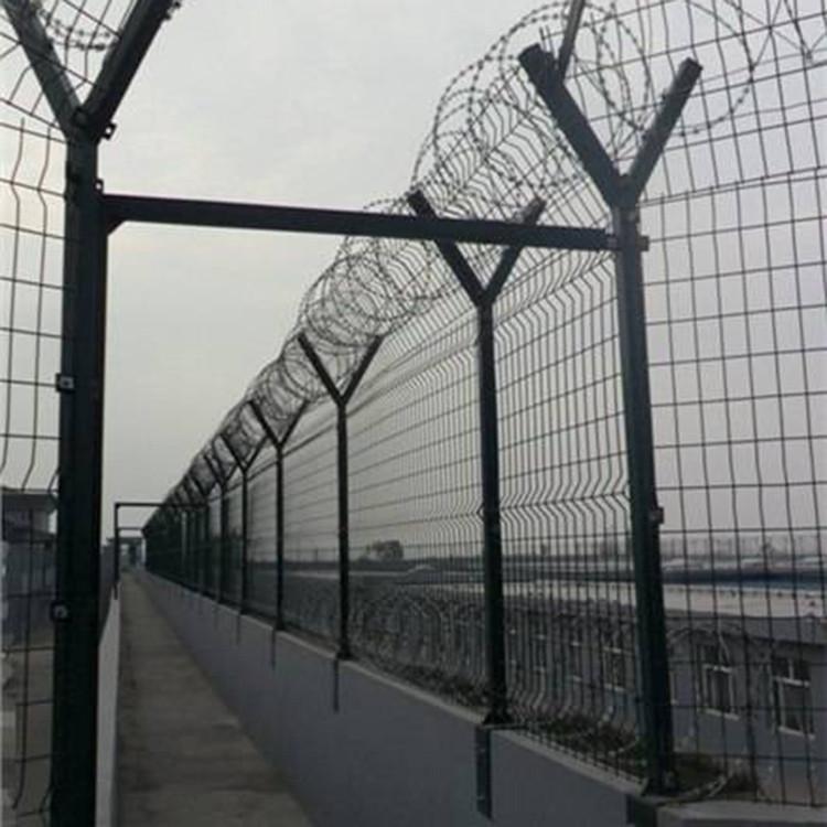 机场隔离网是安全防盗连接件和热镀锌刀片刺笼组成是强度和安全防御性级别很高的隔离栅产品。近年来,机场围栏网被广泛应用在机场,军事基地等高安全场所。(如果在机场围栏网顶部加装刀片刺丝、刀片刺绳后又很好的增强了安全防护性能。)