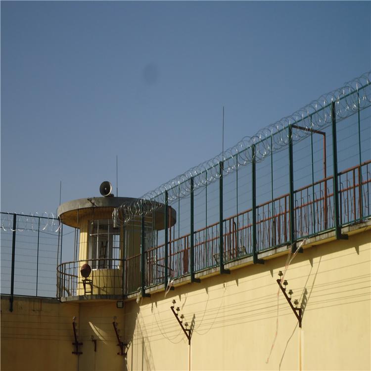 监狱护栏网又称作“Y型安全防御护网”,是由V型支架立柱,加强型焊接片网,安全防盗连接件和热镀锌刀片刺笼组成,强度和安全防御性级别很高。近年来,被广泛应用在监狱,军事基地等高安全场所。注:如果在监狱护栏网顶部加装刀片刺丝、刀片刺绳后又很好的增强了安全防护性能。采用电镀、热镀、喷塑、浸塑等防腐形式,具有很好的抗老化、抗晒、耐候等特点。其产品造型美观、花色多样,既起到围栏作用,又起到美化作用。由于具有安全性高、防攀爬能力好,网片连接方式采用特制SBS紧扣件,有效防止人为的破坏性拆卸,横向四道折弯加强筋,使网面强度显着增加。