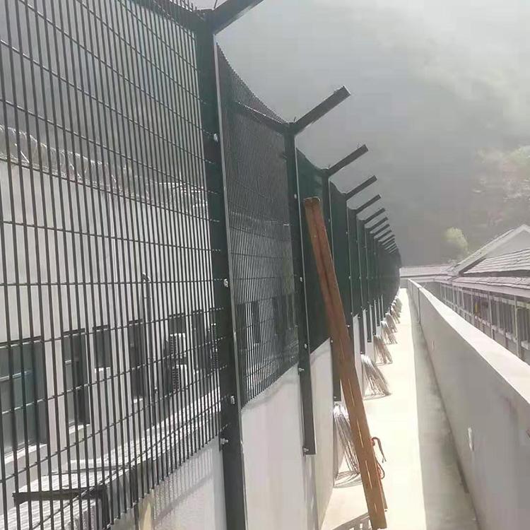 监狱隔离网又叫钢网墙 监狱铁丝网围墙 它是由网片、立柱和蛇腹式刀刺网三大部分组成的。网片同城四周焊接边框,以增加隔离网墙的防护强度,监狱隔离网的边框和起他场地的边框不同,网片中间必须加横撑,以起到横向支撑网子的作用,边框左右两侧焊接连接片,以便与两侧立柱连接。立柱的顶部焊接v型弯头,这种立柱也叫y型立柱,用以架设蛇腹式刀刺网,与下部的监狱护栏网结合,形成一道难以逾越的铜墙铁壁。