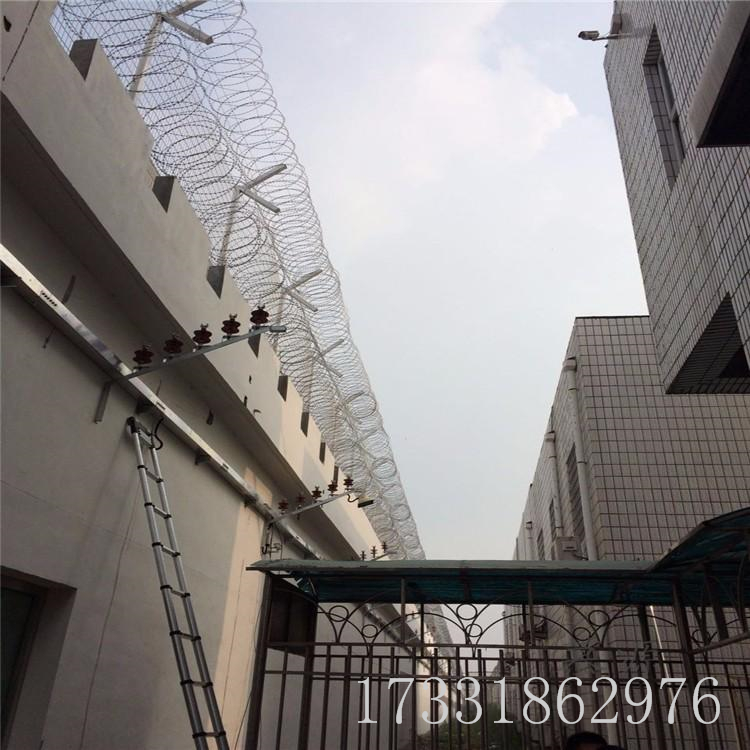 监狱隔离网又叫钢网墙 监狱铁丝网围墙由锐利尖角镀锌钢板或不锈钢薄板做刀片,高张力钢丝做芯线组合而成的阻绝器材。由于刀片刺绳隔离网造形独特不易触摸,因而能达到极好的防护隔离效果。直线形刀片刺网由刀片型直线刺网交叉焊接成型,可用于防盗窗、高速护栏、隔离栅。施工迅速、效果显著。刀刺隔离网,有多种架设方式可供选择,施工迅速,既省经费,又可达到安全隔离网效果。