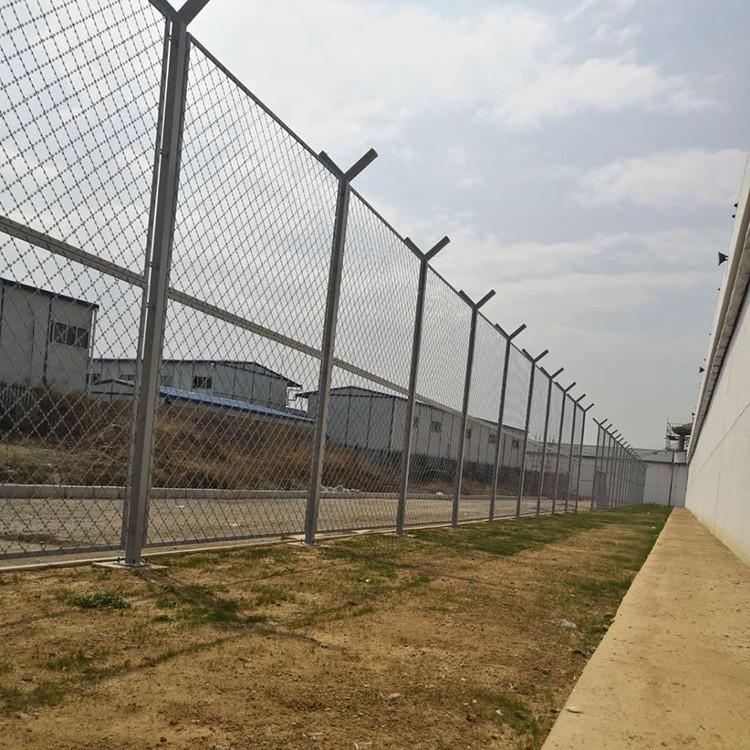 监狱隔离栅是牢固性比较强的隔离网,隔离网焊接在铁管框架上,框架是方管或者圆管焊接成的框架结构。然后镀锌或者包塑。使用在距离很长场地,大量应用于的公路边沟外侧隔离网和铁路两侧。美观、坚固耐用、不易褪色。