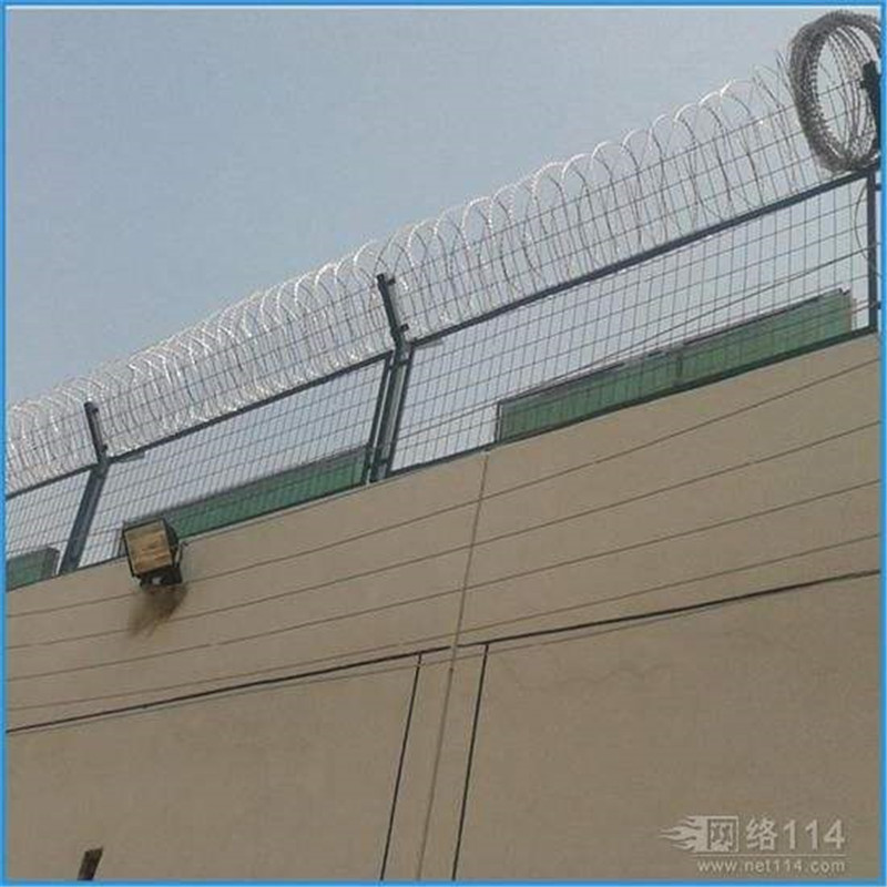 4.V型顶端安装刀片刺网,直径采用50cm-60cm刀片刺网主要是由热镀锌钢板或不锈钢薄板冲压而成的,它拥有尖锐的刀片,高张力镀锌钢丝或者不锈钢丝做芯线组合而成的产品。