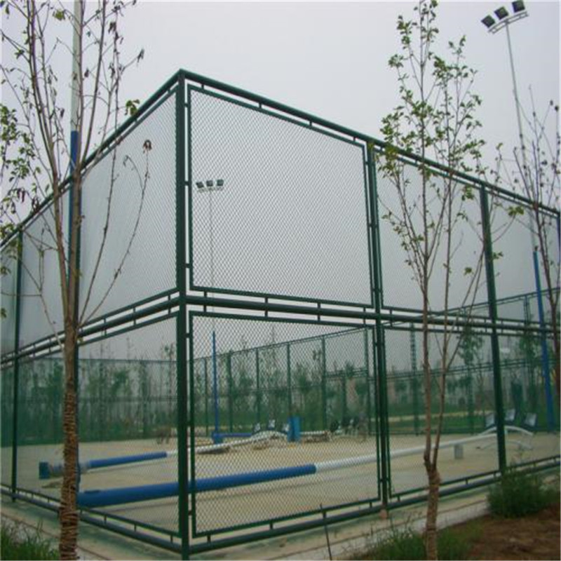 钢筋式球场围网在工厂直接根据场地尺寸定制完成,无须现场焊接,能保证最关键的镀锌层及喷涂层完好,能抵挡任何气候使用不生锈!另外静电粉末喷涂涂层不褪色、不开裂是油漆所不具备的!