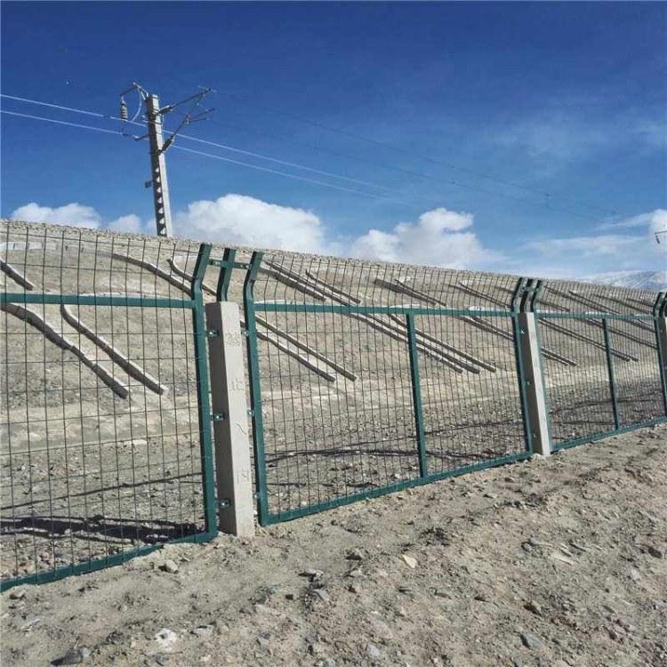 (5)防护栅栏安装时:应对栅栏两侧地面进行平整压实,当栅栏设置位置为坡地或栅栏两侧地面存在高差时,应将栅栏两侧各2m范围内的高出部分进行平整,两侧地面应平齐等高且不高于栅栏下槛底部,以保证栅栏相对于两侧地面均达到防护高度。
