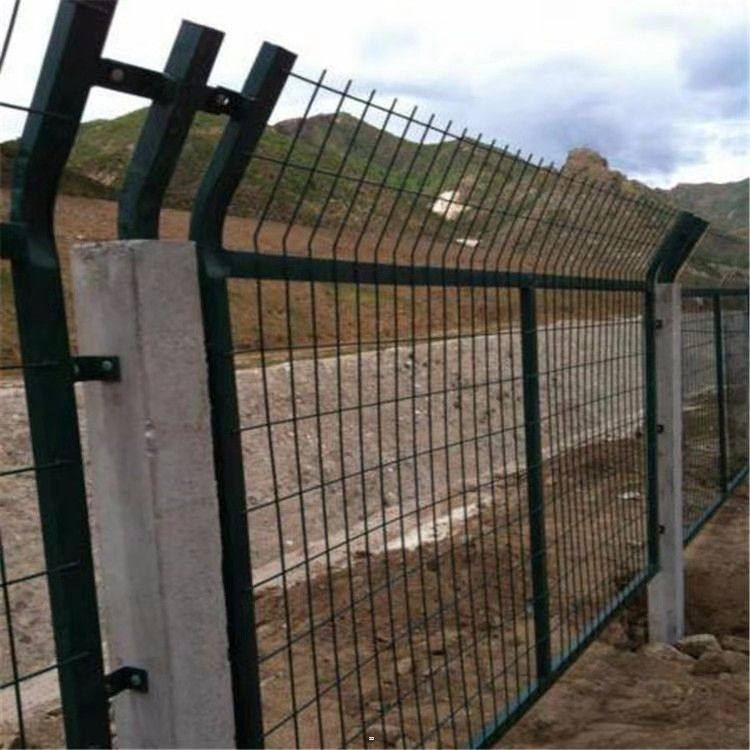 铁路加高护栏网合适的折弯,造就了此种商品特有的漂亮效果,并且外表选用多种 色彩的浸塑处置,如黄色,绿色,红色,立柱与网片不一样色彩的调配更是令人心旷神怡,同时此种商品多选用带底盘立柱,装置只需打好膨胀螺栓,十分的方便。