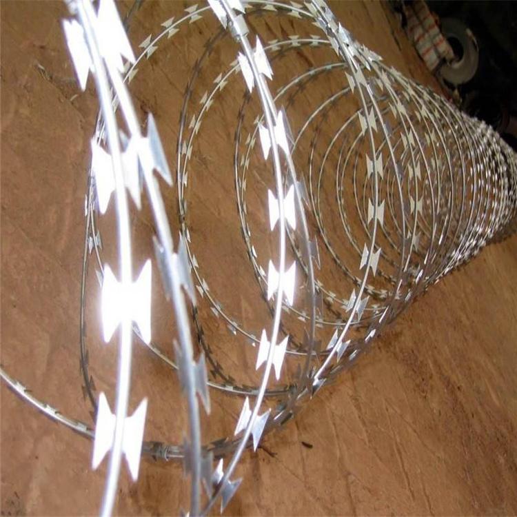刀片刺绳原料的关键所在有哪些?刀片刺绳根据原料分为电镀锌、热镀锌、不锈钢等多种,假设用户当地环境没有重度污染的话,可以优先思索电镀锌刀片刺绳,由于它的本钱比拟低价,在轻度污染环境下不易生锈,本身的颜色亮光,既有用又漂亮。