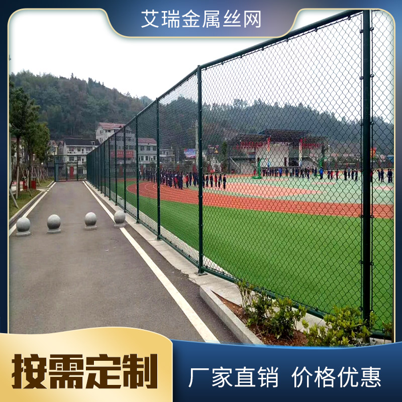 体育场护栏网规格包塑丝经 3.8mm网孔 50mm X 50mm尺寸:3000mm X 4000mm立柱:直径60/2.5mm钢管横柱:直径48/2mm钢管焊接连接方式:焊接防腐处理:电镀、热镀、喷塑、浸塑。颜色:红色、绿色、白色、蓝色、黑色、黄色等。体育场护栏网具有产品色彩鲜亮、规格齐全的特点。整体网面平整,强力张紧,不易受外力撞击变形。