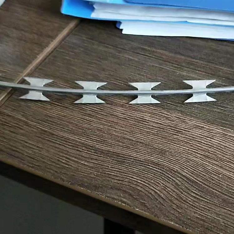 刀片刺绳防护网是一种新型防护网。品具有吓阻效果好.美观.施工便利.经济实用等优异特点。刀片刺绳防护网主要用于园林公寓.机关单位.监狱.哨所.边防等的圈禁防护。刀片刺绳防护网由锐利尖角镀锌钢板或不锈钢薄板做刀片,高张力钢丝做芯线组合而成的阻绝器材。由于刀片刺绳防护网造形独特不易触摸,因而能达到比较好的防护隔离效果。直线形刀片刺网由刀片型直线刺网交叉焊接成型,可用于防盗窗、高速护栏、隔离栅。施工迅速、效果显著。刀片刺绳防护网,有多种架设方式可供选择,施工迅速,既省经费,又可达到吓阻的效果。