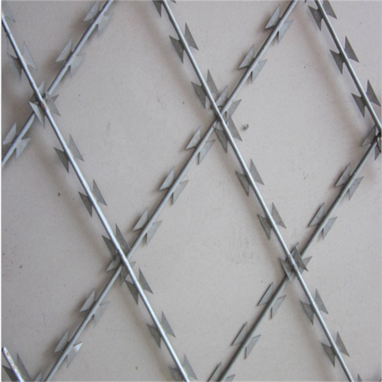 篱笆型刀片刺网是一种刀片刺网做成篱笆型的防护网,刀片实用且外形美观,主要用于围栏、门窗的防护和军事防御等长度、直径可依客户要求制作。
