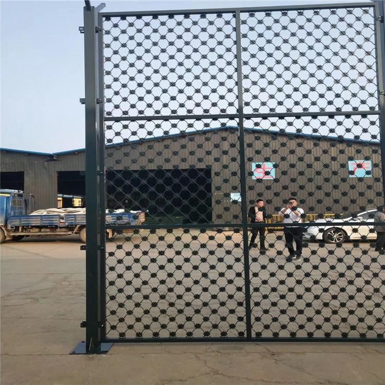 高度3—5米,立柱跨度为2.5米—3米。是由防盗美格网加焊防爬刺片而成,美格网的网孔般为:100x100mm,110*110mm,丝径为:5—8mm,刺片直径50—150mm,形状似太阳,四周布满刺尖。焊接在美格网每一个交接点处,是由二氧化碳保护焊进行焊接的,网边框为20×30mm、40x60mm、镀锌方管,壁厚不得少于1.5mm.然后把焊接打磨好的边框与网片连接,再经过静电喷涂就算成品了。梅花刺片隔离网由美格网和梅花刺片(因其外形类似梅花得名)组合而成的阻绝器材。由于梅花刺片隔离网造形独特不易触摸,因而能达到很好的防护隔离效果。既美观又让人不寒而粟。起到了很好的阻吓作用。