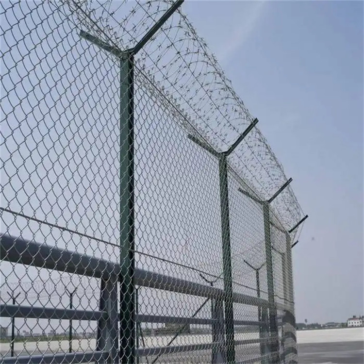 机场围界护栏、铝包钢机场围界隔离网、机场防护网安装具有独具匠心的钢绞线穿插式连接立柱和网片,在保证美观大方、增强通透性的同时,能够承受20kN推力的铝包钢绞线使整体围界足够坚固,大大降低人为对围界的损坏,抵御外来人员入侵。本产品具有美观、实用、大方、防腐性好、无需保养、防攀爬能力强、方便运输和安装等特点,关键的是艾瑞铝包钢丝机场护栏可以使用20年以上,强度可达600Mpa。主要适用于机场周围的隔离防护,美化及防翻越工程。