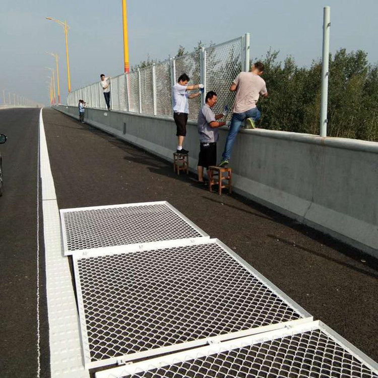 6上装法兰盘与桥梁防抛网外侧面紧贴固定,立柱下端固定后要保证安装后竖直。