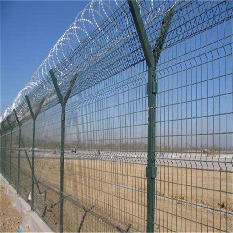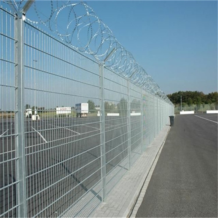 3.围界顶部应设有防翻越装置,并加装蛇腹型刀刺圈,刺圈直径500mm,刺圈间距20cm—25cm,应使用标准件与网片联接牢固。