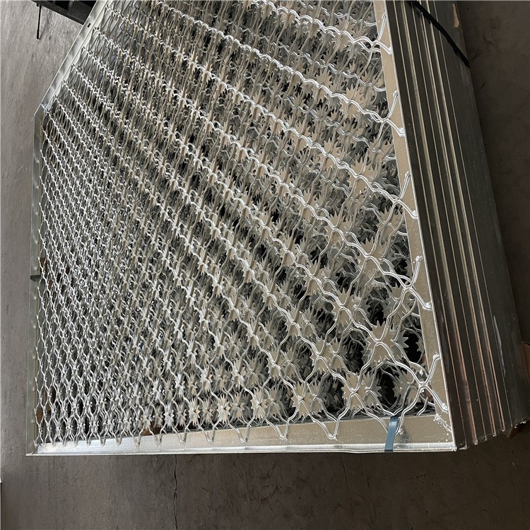 梅花刺隔离网又叫冲压刺隔离网、太阳花刺片隔离网,行业内简称梅花刺网。其特点为坚固牢靠、防止攀爬等。梅花刺隔离网一般用于监狱大门,探监门,人员通道两边的隔离网,由于其成本造价高,所以还没有广泛替代焊接式隔离网。整体架构由美格网+梅花刺片、边框、立柱、刀刺网组成。