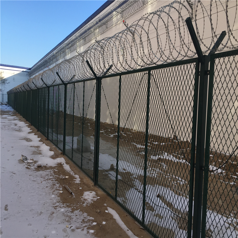 监狱防护网主要用处:监狱、机场封锁 、私人地域、军事重地、 场区围网、 开发区隔离网、看守所、拘留所、戒毒所、军事禁区、特殊地带、军事基地圈护、沟壕圈护边防线等高平安场所,监狱防护网具有构造新颖、巩固严密、网面平整、网孔平均、刀锋锐利、防攀爬、腐蚀性强、巩固耐用、美观大方、刀锋锐利、防攀爬、强风、冲击、剪切、腐蚀等优良特性。