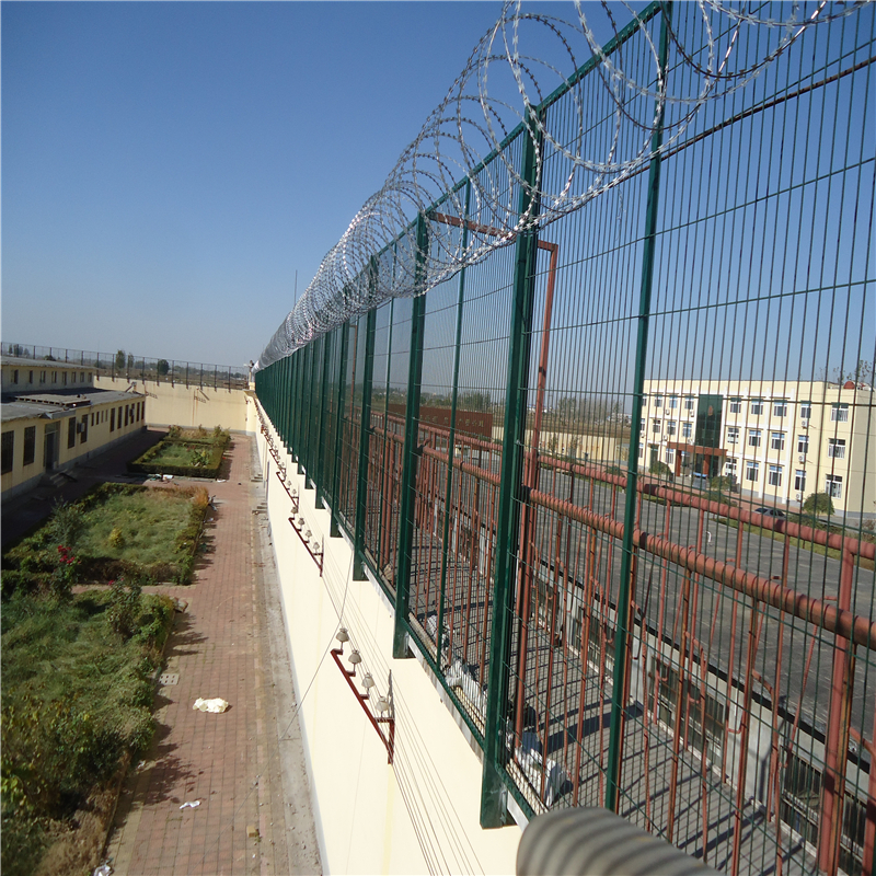 监狱巡逻道隔离网是非常重要的监狱安全防护设施,产品采用高强度的钢筋焊接网与顶部尖锐的蛇腹型刀片刺网紧密结合,构成一道强大的安全屏障。