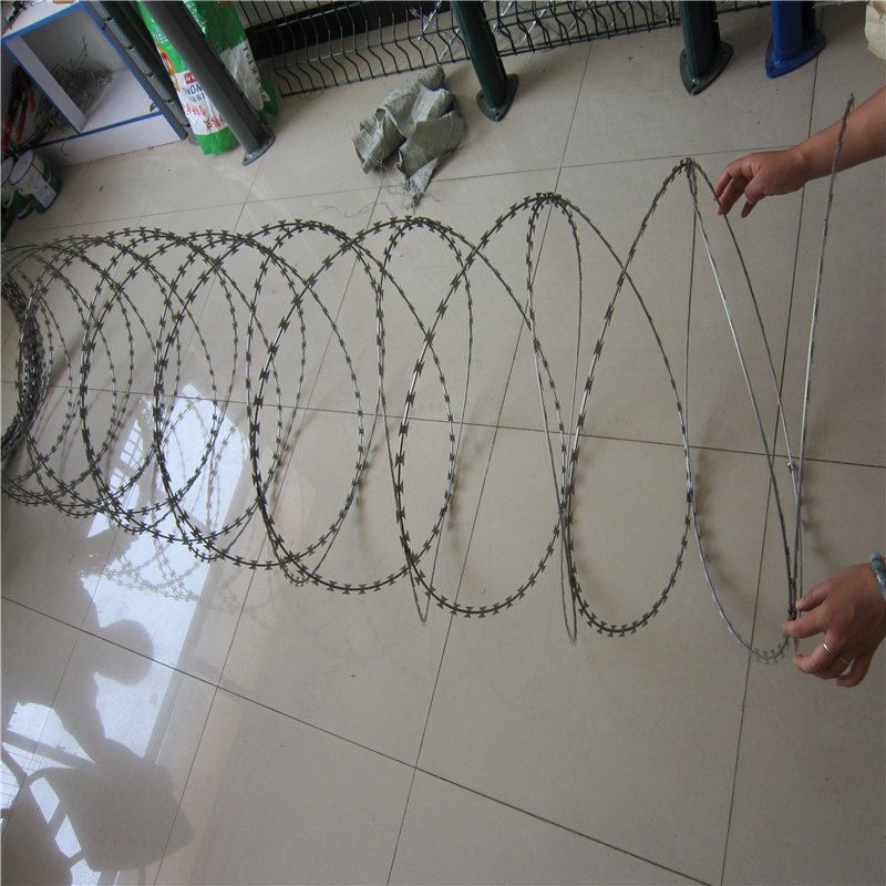 刀片刺绳(razor barbed wire)也称为刀片刺丝、刀片刺网,是一种新型防护网。刀片刺绳具有美观、经济实用、防阻效果好、施工便利等优异特点,刀片刺绳被广泛应用于许多国家的工矿企业、园林公寓、边防哨所、军事领域、监狱、看守所、政府建筑物和其他国家的安全设施。