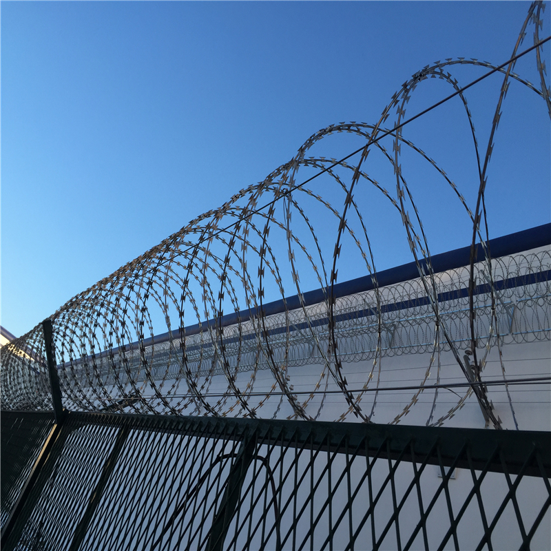 刀片刺绳又称为刀片刺丝、刀片刺网,是一种新型防护网。刀片刺绳具有美观、经济实用、防阻效果好、施工便利等优异特点,目前,刀片刺绳已被广泛应用于许多工矿企业、园林公寓、边防哨所、军事领域、监狱、看守所、政府建筑物和安全设施。